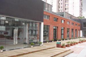 绿地阳光园庭院式的特色,结合绿化、水景、灯光等景观衬托,比一般的办公楼具有更强的空间感和景观效应。整个旧厂区的几栋楼房围成一圈,加上里外风格的一致延续,显得更合理顺畅,无处不体现出创意风尚。