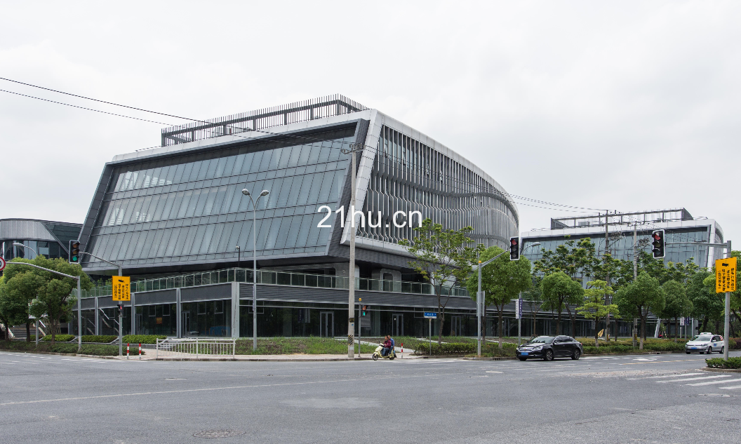 虹桥正荣中心标准化办公的体量坐落于单层活双层的商业群房之上,并于落客区悬挑,形成鲜明的入口标识形态,俯瞰中央绿地。虹桥正荣中心一系列错落的低层独立办公室被散落分布在中央陆地中,并结合庭院式绿化的设计。