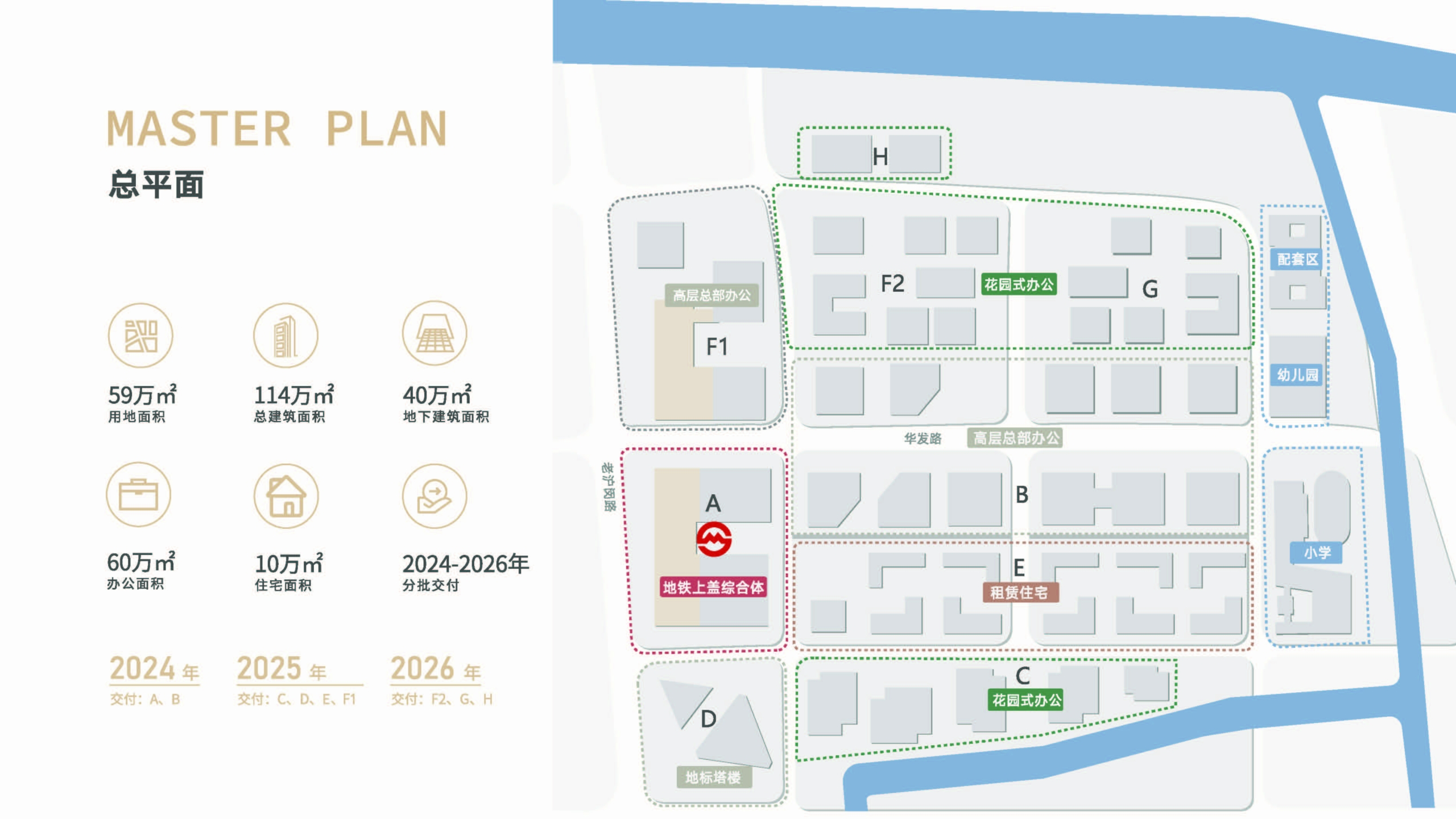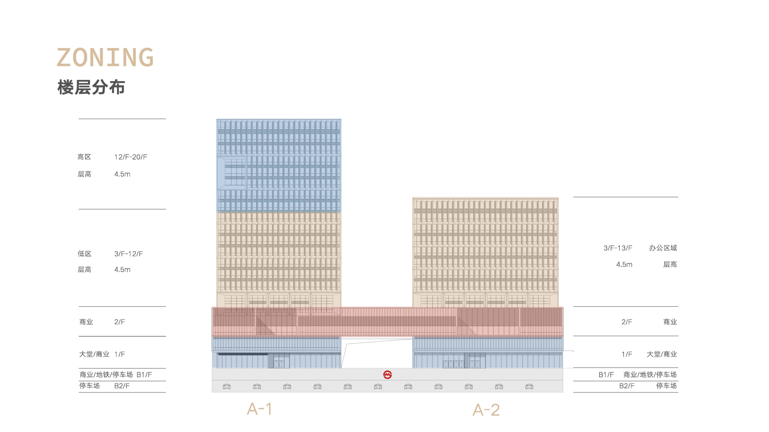 紧邻15号线朱梅路站的A2A-2地块内标志性建筑最高建筑高度98.85米。其3层裙房作为商业楼,建筑面积约1.82万平方米,其地下楼层与15号线朱梅路站站厅层设两处地下联通口。